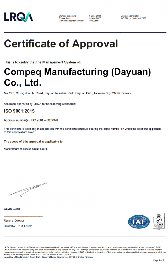 大園廠ISO9001 品質管理系統(大園廠)
